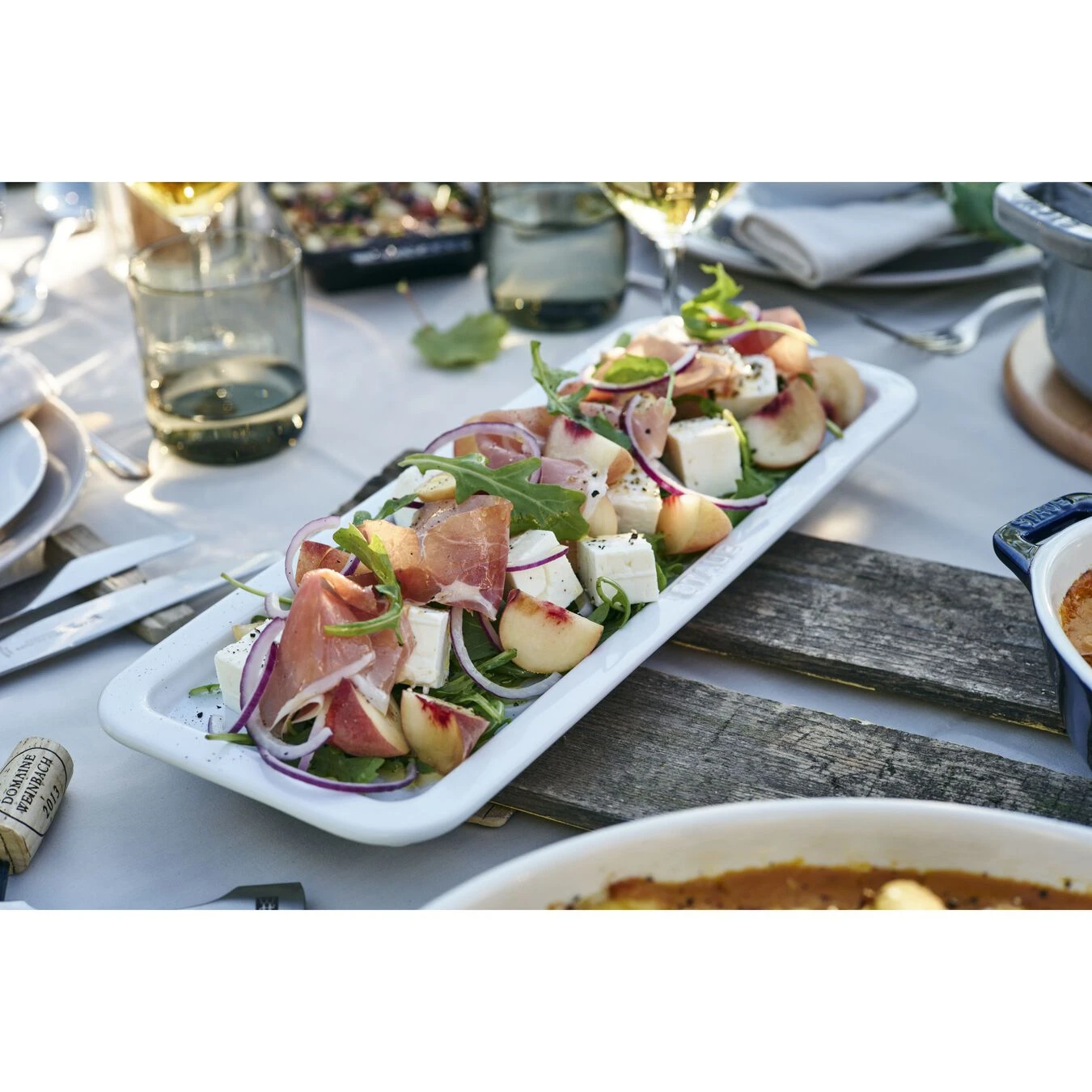 Fleisch oder Fisch auf einer Servierplatte macht sich besonders schön, wenn Sie Gäste zu einem festlichen Anlass erwarten. Die Servierplatte aus der Serie Ceramic by STAUB in der Farbe Weiß bietet mit ihren Maßen von 14 mal 36 cm eine große Servierfläche für das gereichte Essen. Dank ihres zurückhaltenden Designs und der interessanten Farbgebung passt sich die Servierplatte von STAUB an jede Tischdekoration an. Aufgrund ihrer emaillierten Oberfläche lässt sie sich im Anschluss zudem besonders leicht reinigen. Mit dieser Servierplatte richten Sie Ihre Lieblingsspeisen auf dem Festtagstisch stilecht an.